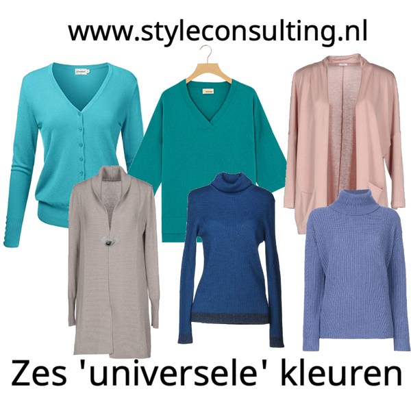 Universele kleuren komen in alle kleurpaletten wel voor. Soms zijn ze net even anders, bijvoorbeeld wat donkerder, lichter, vergrijsder of feller. Het kan dus niet echt mis gaan met deze zes kleuren.