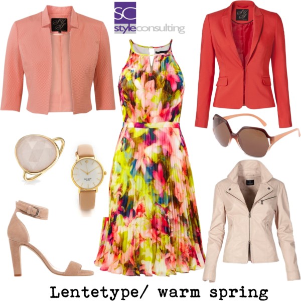 ^ De uitbundige print van deze jurk is een echte blikvanger en vraagt om rustige kleding en accessoires. De print van dit jurkje bevat warme kleuren en daardoor is uitermate geschikt voor het lentetype, maar past ook heel goed bij een lente/herfsttype.
