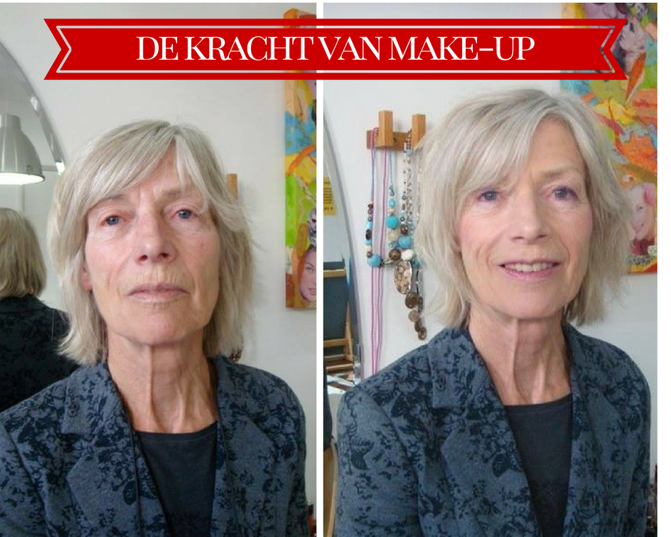 ^ Make-up geeft net dat beetje extra. Op deze foto heeft de klant rustige kleuren (grijs en taupe) aan. Juist dan kan een mooie dagmake-up uitkomst bieden om wat kleur toe te voegen.