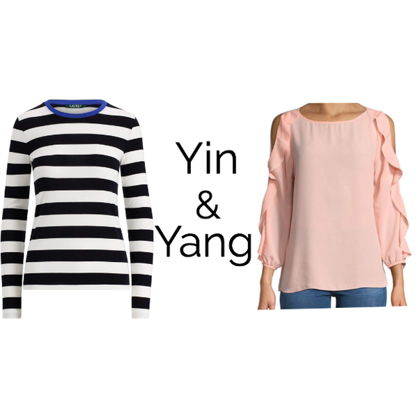 * Kleding die 'Yang' is bevat rechtere lijnen terwijl kleding die rond is meer 'Yin' is. Lees in dit blog meer over her verschil tussen rechte en rondere lijnen in je kleding.