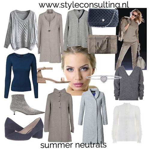 ^ Voorbeelden van neutrale kleuren voor het zomertype. De neutralen voor het zomertype zijn koel, gedekt en niet te donker. Denk aan o.a. koele grijstinten, koel taupe, koel beige, grijsblauw, kiezelkleur, middenblauw, rozebruin, zilver, jeansblauw en offwhite. Het licht-donker contrast van het zomertype is vaak niet erg hoog.