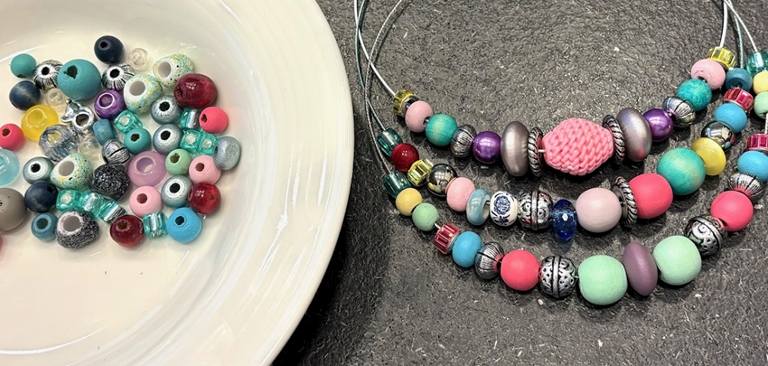 ^ Drie voorbeelden van combinaties die je kunt maken met de kralen voor het lente/zomertype.